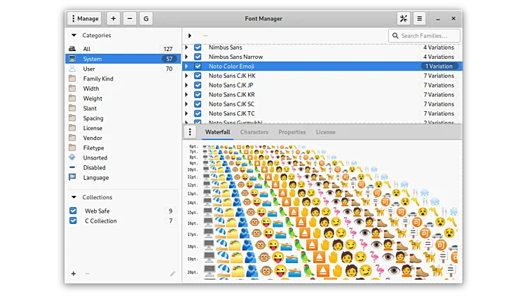 While designed primarily with the Gnome Desktop Environment in mind, it should work well with other Gtk desktop environments. You can organize fonts by different categories or collections.