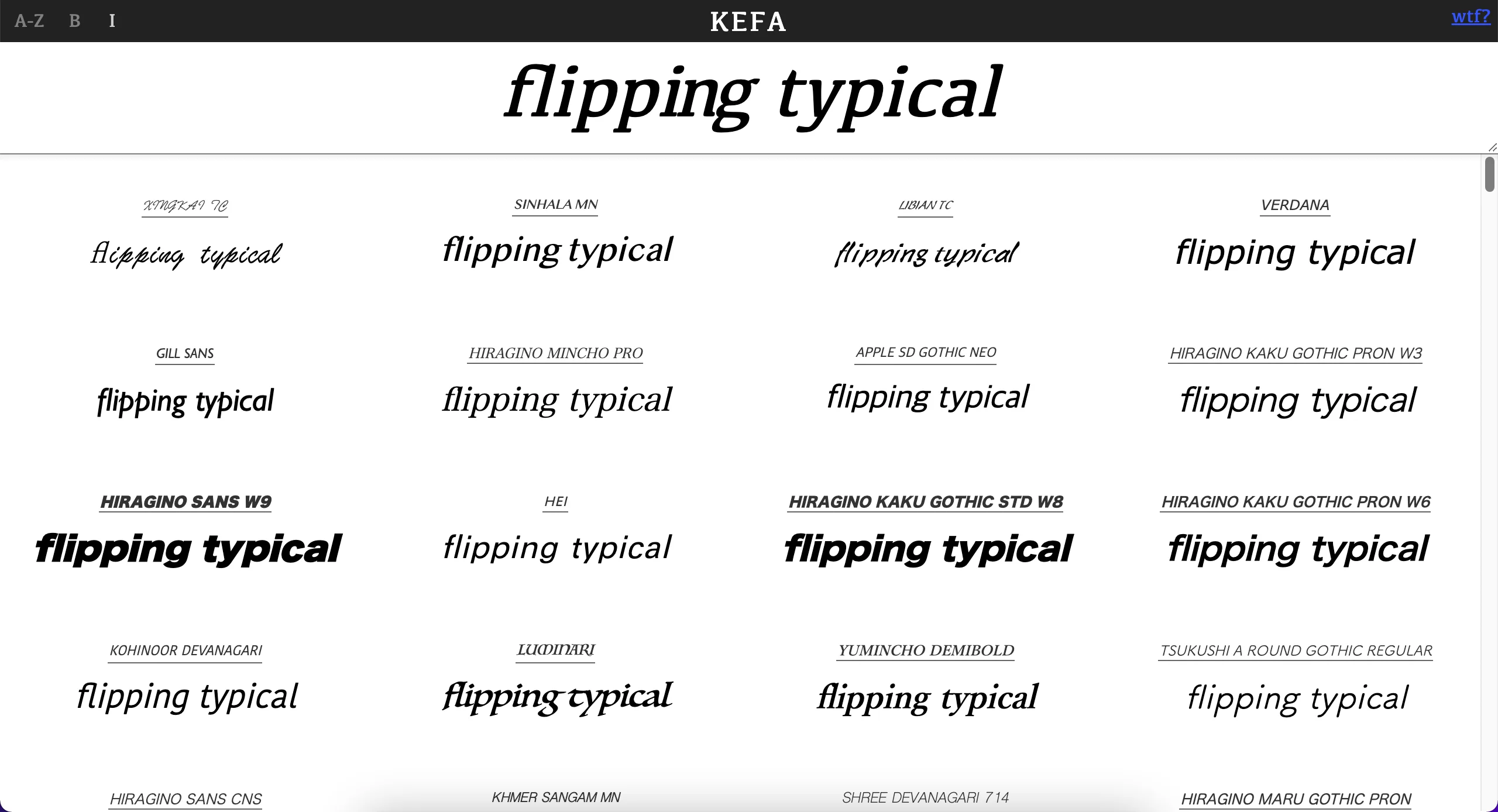 If you are looking for a way to have a quick overview of your fonts you own, using flipping typical is always a good idea! flipping typical is a web browser font management tool that creates hidden elements and measures them before and after changing their font family.