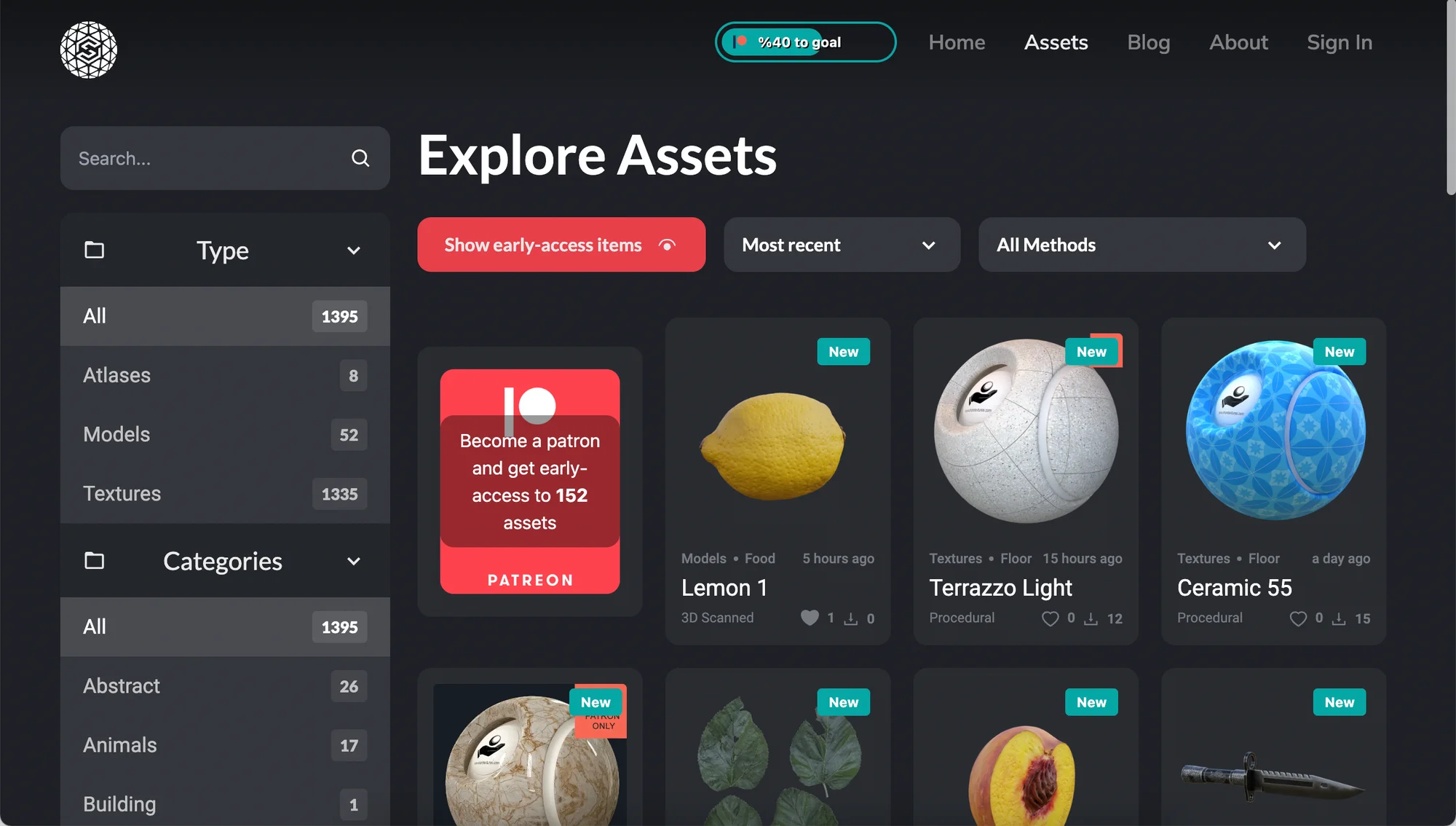 It has more than 1000+ high-quality 3D models and textures to date and growing, you don't need to register or pay, just select an asset and click the download button then enjoy up to 4K resolution assets! How awesome!
