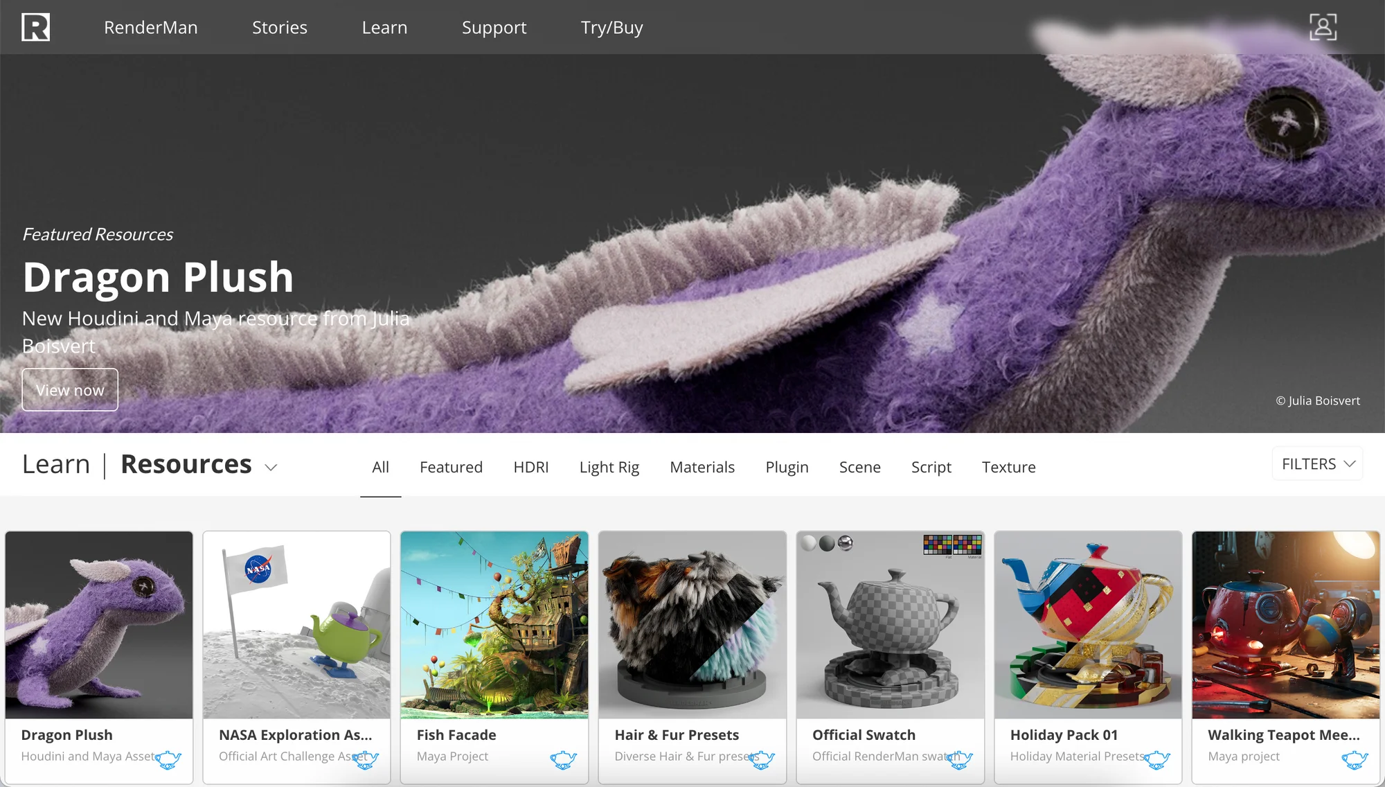 In the resources page of RenderMan it provides many free assets with original documents for you to use in your design it has texture, materials, scene and more!