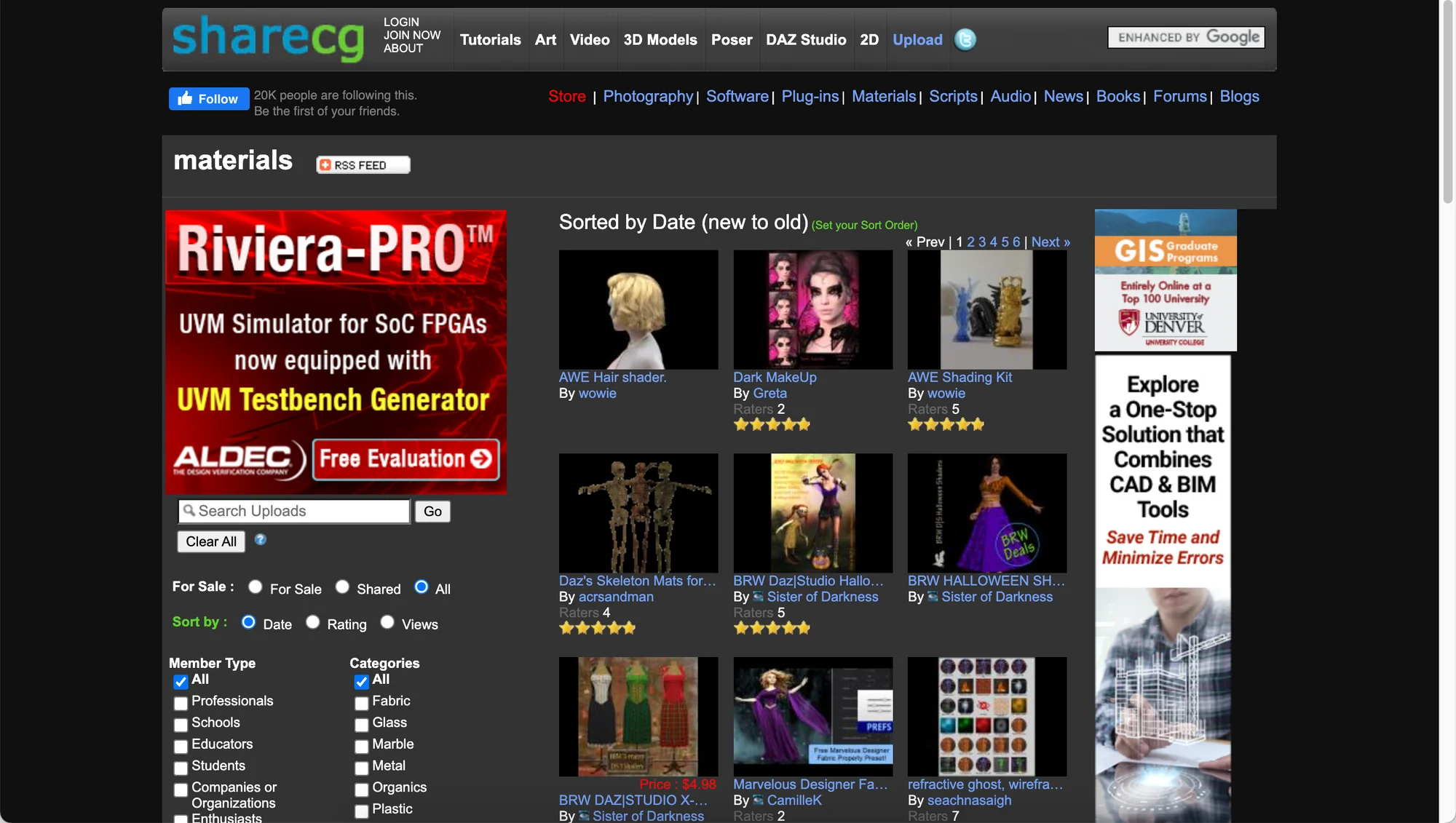ShareCG is a social community of CG Artists, Animators and 3D Modelers displaying and sharing their work, with their filter on the website you can fine many ready to use free materials in all sorts of categories and even formats.