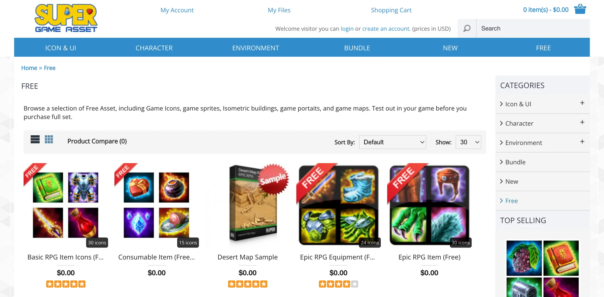 Super Game Asset Store provides time saving game resources for game developers small and big, browse a selection of free asset, including game icons, game sprites, isometric buildings, game portraits, and game maps.