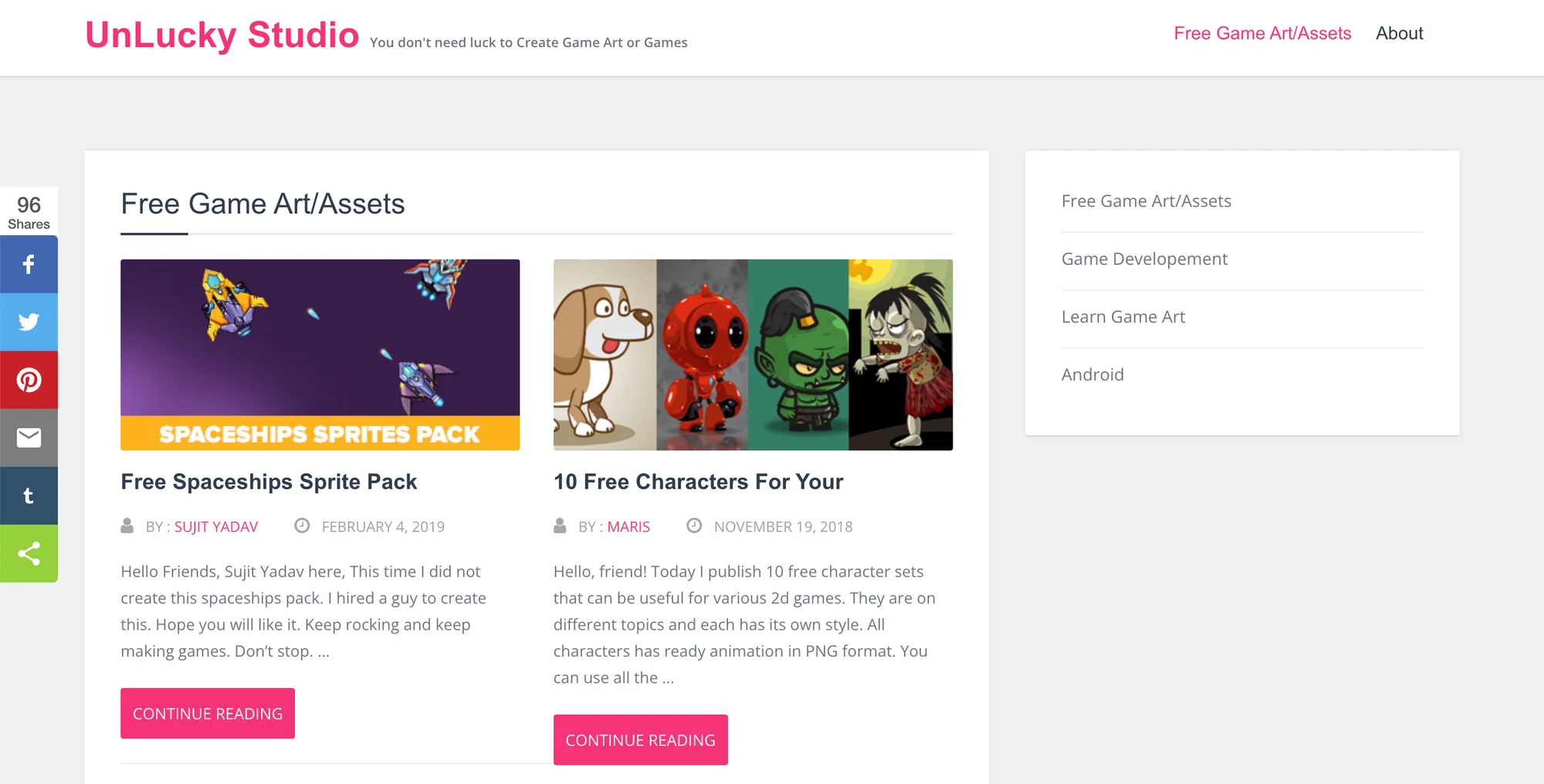 He shares free game art and assets, game development, learn game art on his website, all of them are from his own unique experiences with step by step guidance.