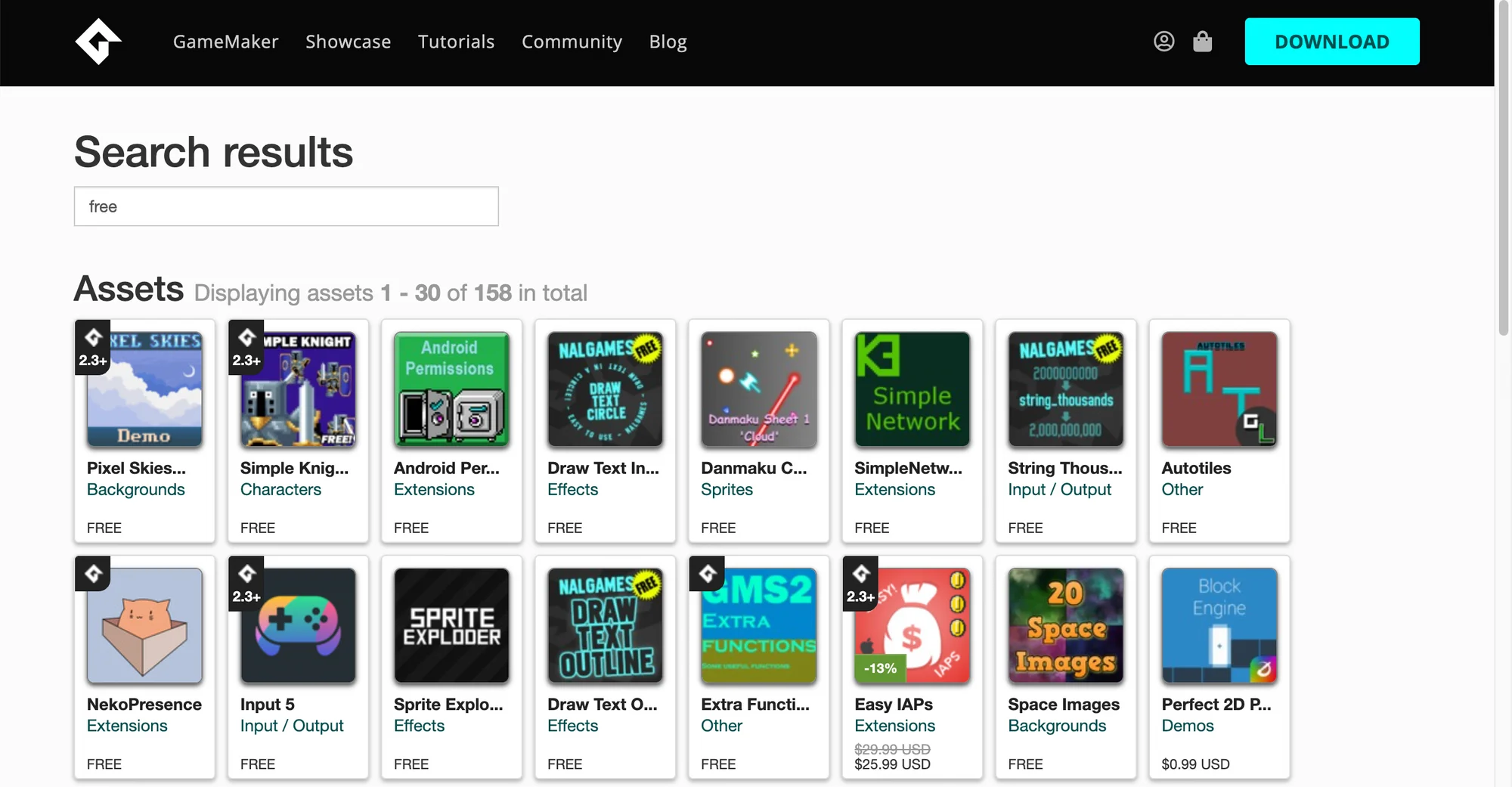 In their GameMaker market place you can find ready to use assets for your game, paid game assets are also available.