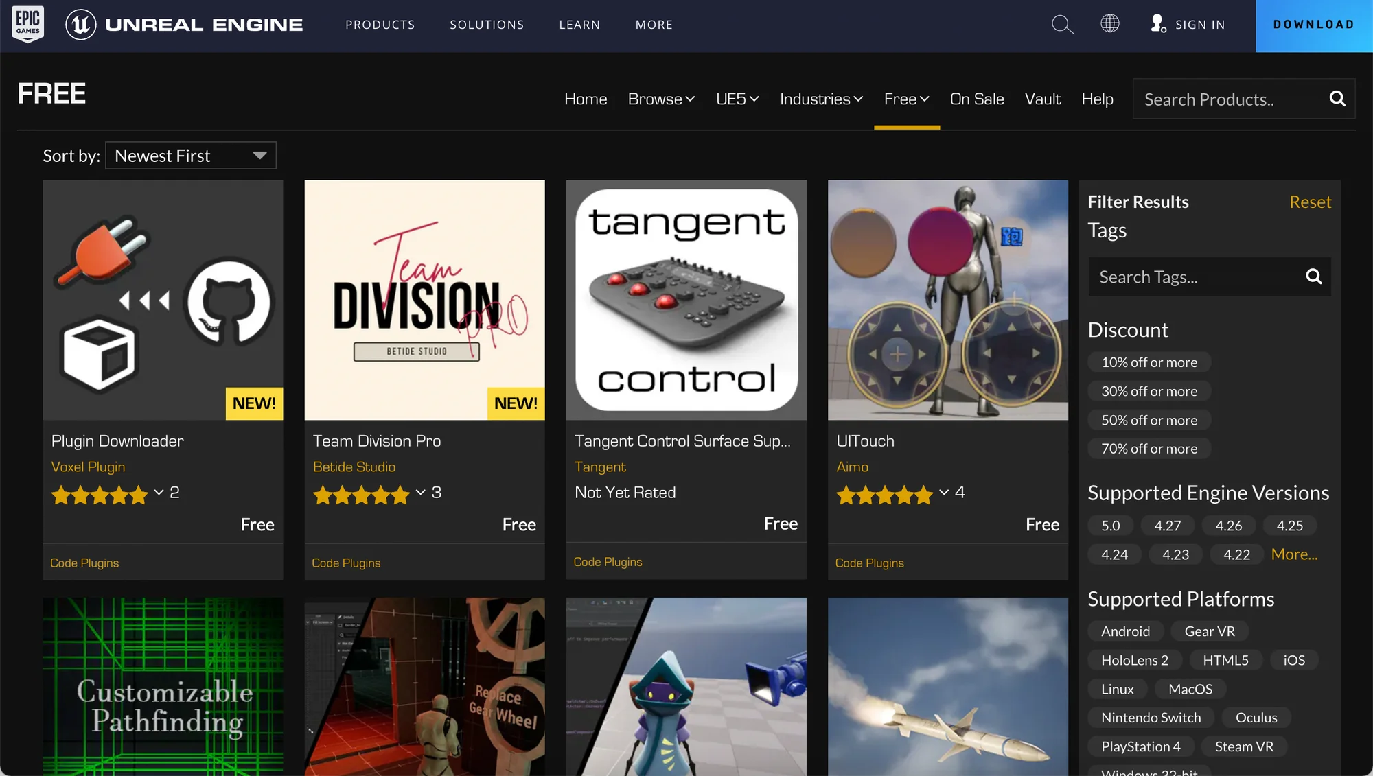With it’s filter you can find the suitable versions and platform for your game, it even have a dedicated free area for you to explore.