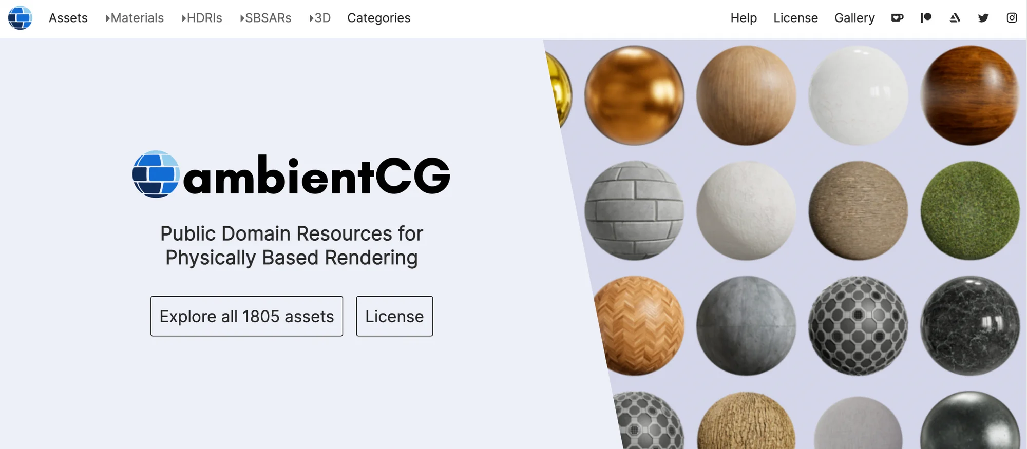 ambientCG is developed and filled with content by Lennart Demes. Is has over 1700+ public domain PBR materials for everyone, new assets are added regularly usually every week.